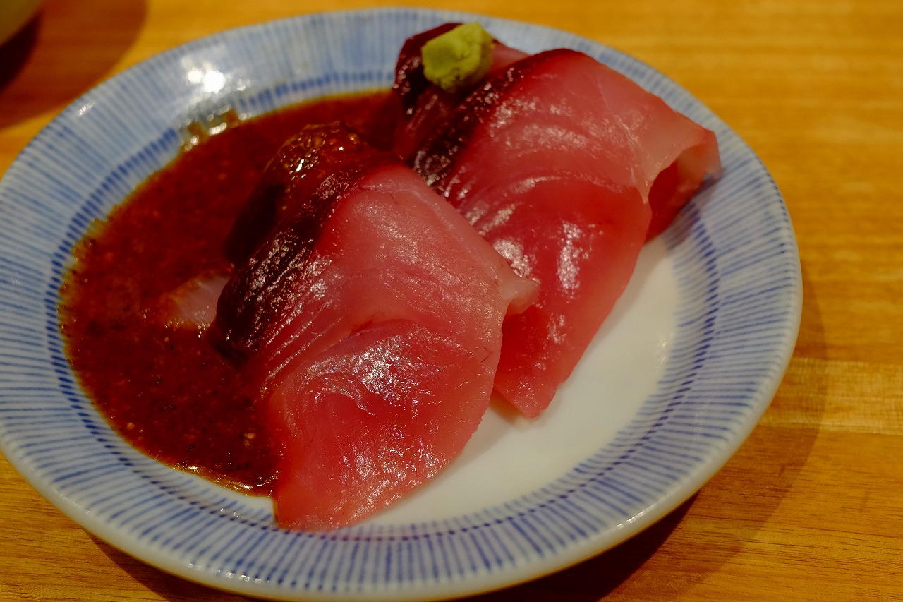 一方それらを混ぜて、卵黄醤油をかけていただくと魚介の旨みが混ざり合い美味しい。