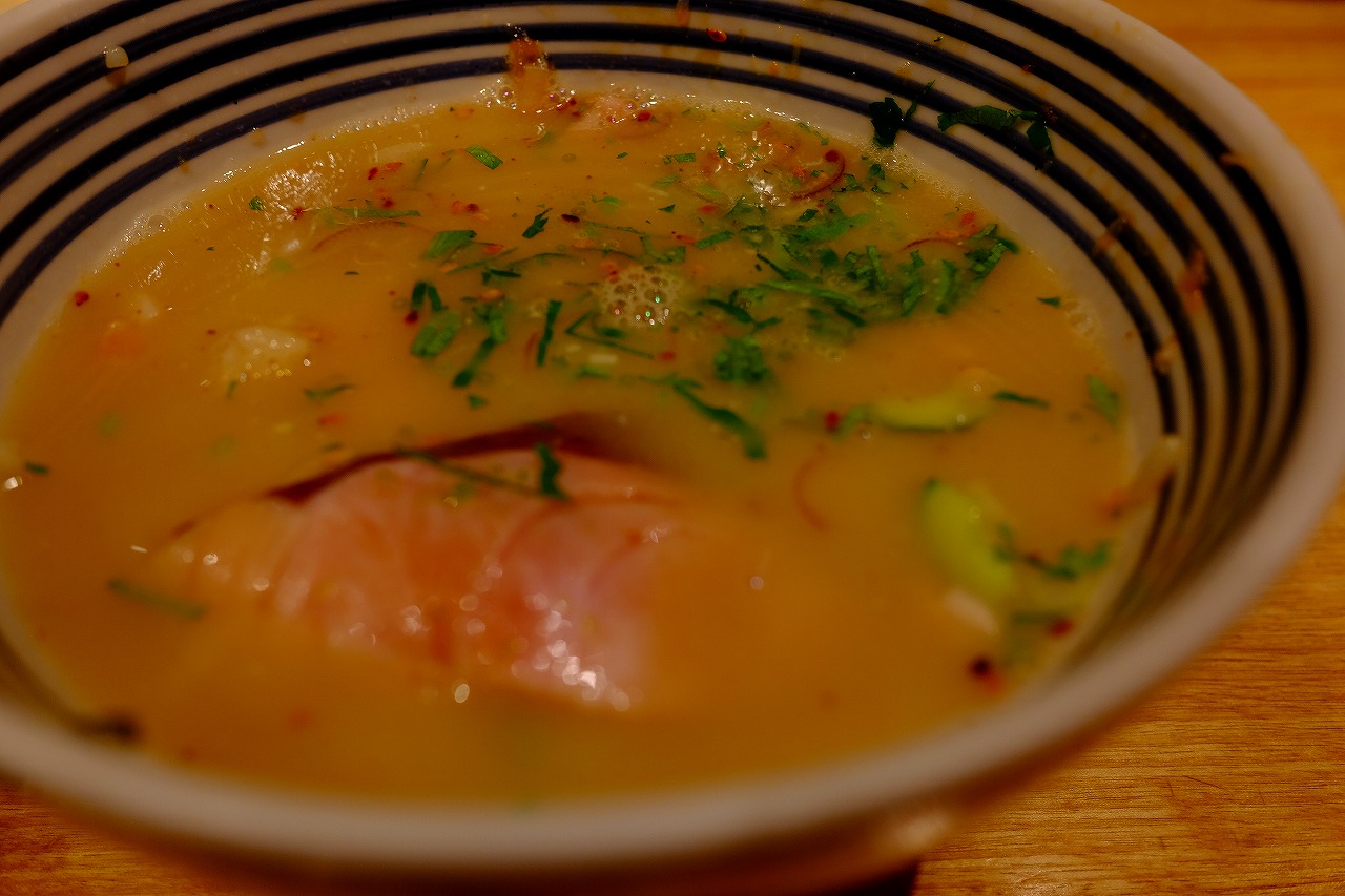 ごまだれの後にほんのり鯛の風味がする程度です。