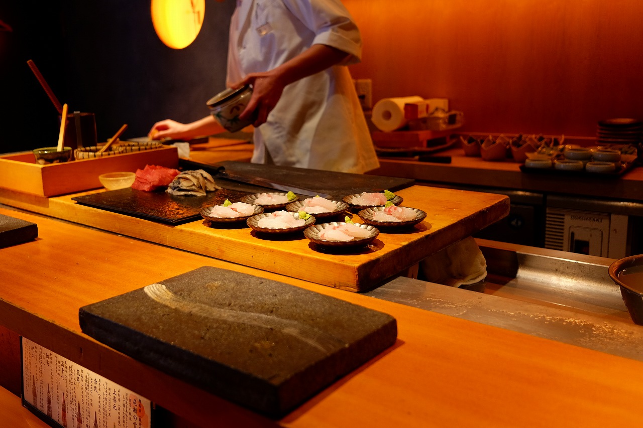夜は「大将おまかせ24品コース」のみで提供され、握りとツマミが交互に出されるテンポの良い構成が魅力です。最後に好きな握りを2貫選べるサービスも好評。そのコスパと内容の充実さには定評があります 。