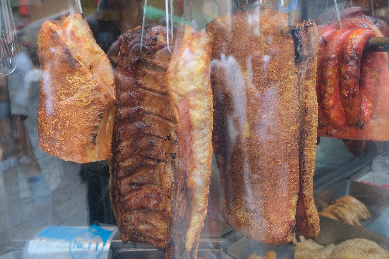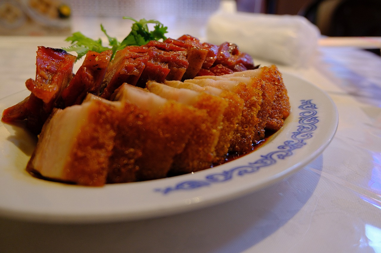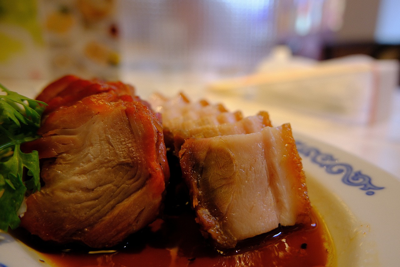 料理の魅力は、何と言っても店頭に吊るされた名物のチャーシュー焼き物。皮付き豚バラ、アヒルなど、香ばしく焼き上げられた焼き物類はこの店の代名詞です。