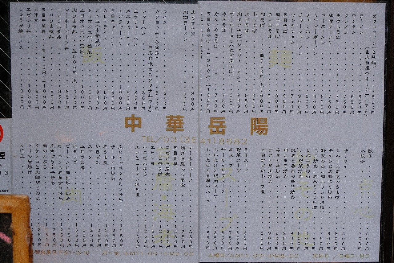 台東区下谷にある「中華料理 岳陽(がくよう)」は、東京メトロ日比谷線・入谷駅から徒歩約3分の場所に位置する町中華です。