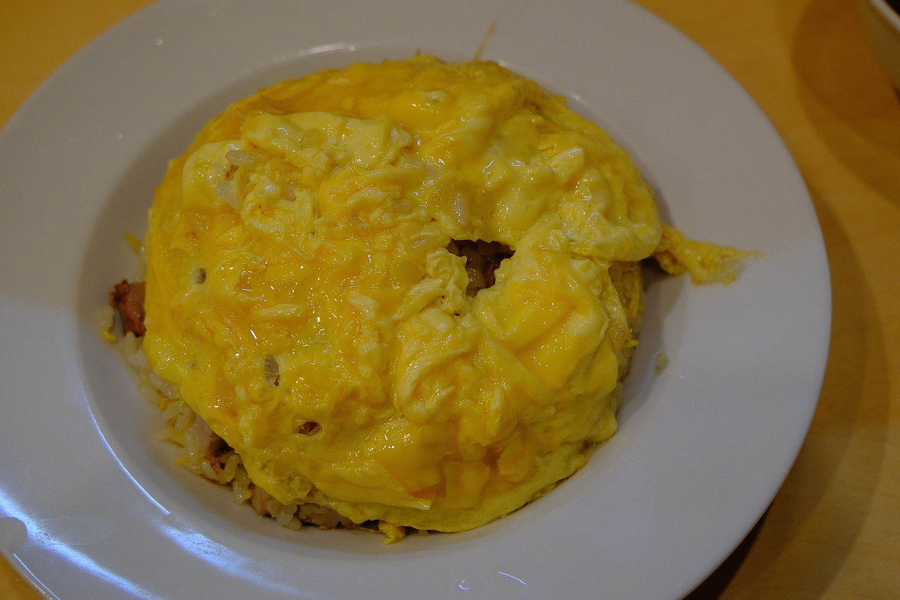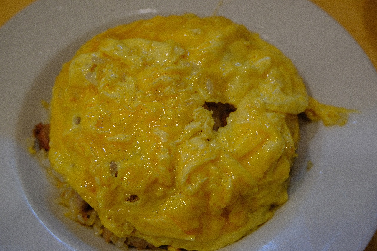 炒飯の上にトロっとした玉子が乗せられた炒飯。