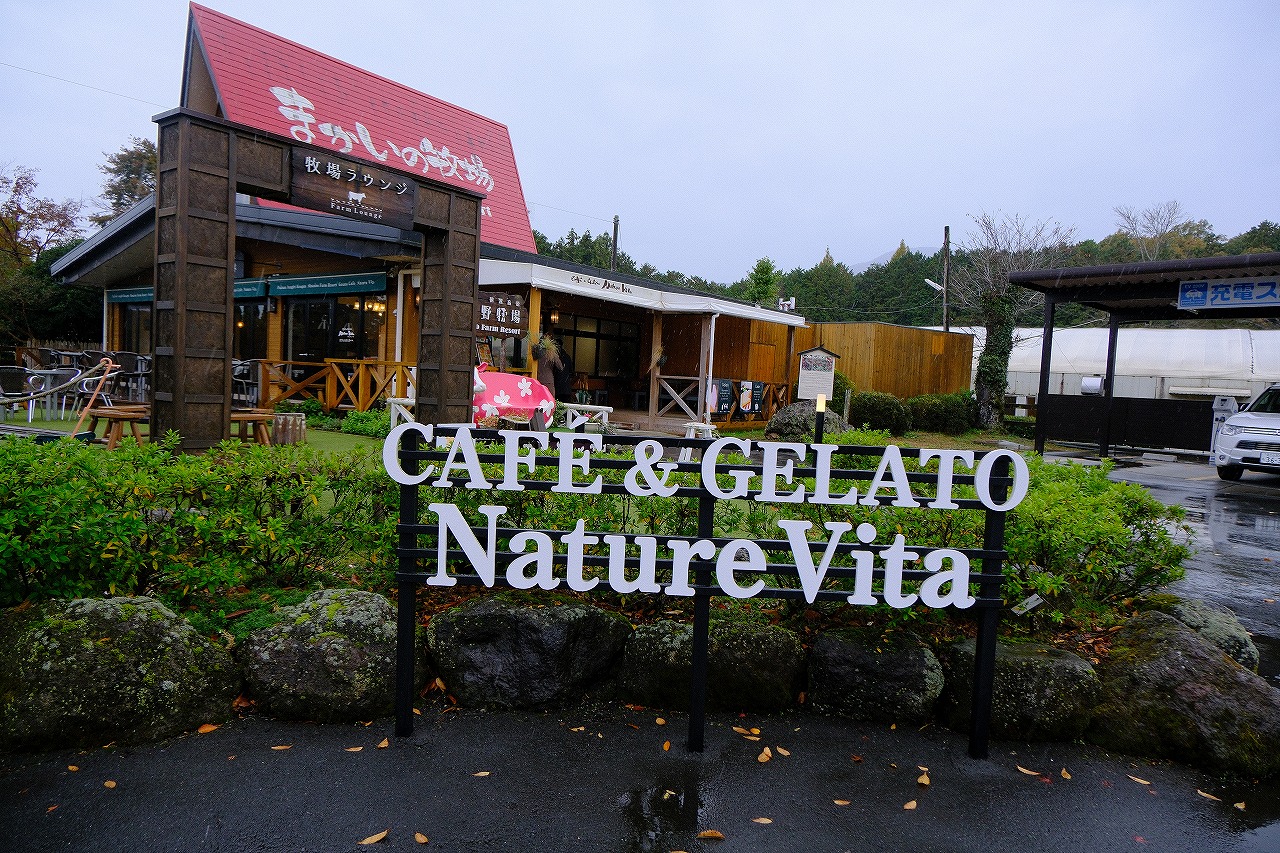 静岡県富士宮市の「まかいの牧場」入場前エリアにあるカフェ&ジェラート店「ナチュラ・ヴィータ」。牧場でその日に搾られた新鮮な生乳を使ったジェラートが看板商品で、季節替わりのフレーバーを常時7種類以上そろえています。自家製パンを使ったサンドイッチや、ビーフシチューなどの軽食メニューもあり、ランチにも利用できます。