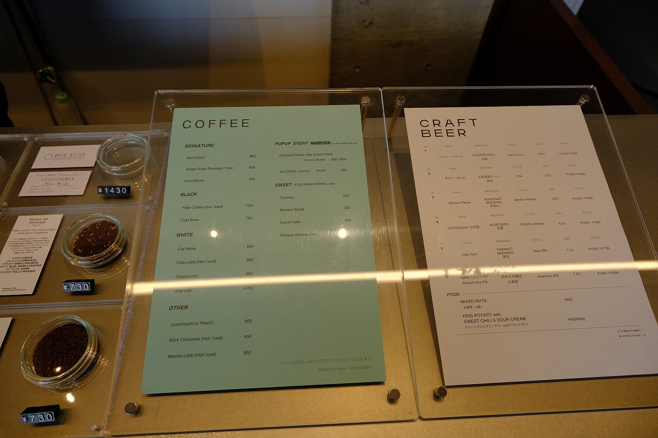提供されるのは、スペシャルティコーヒーを中心としたドリンクやクラフトビール、軽めのスイーツやフード。食事主体ではなく、飲み物をメインに気軽に利用できる点が魅力です。