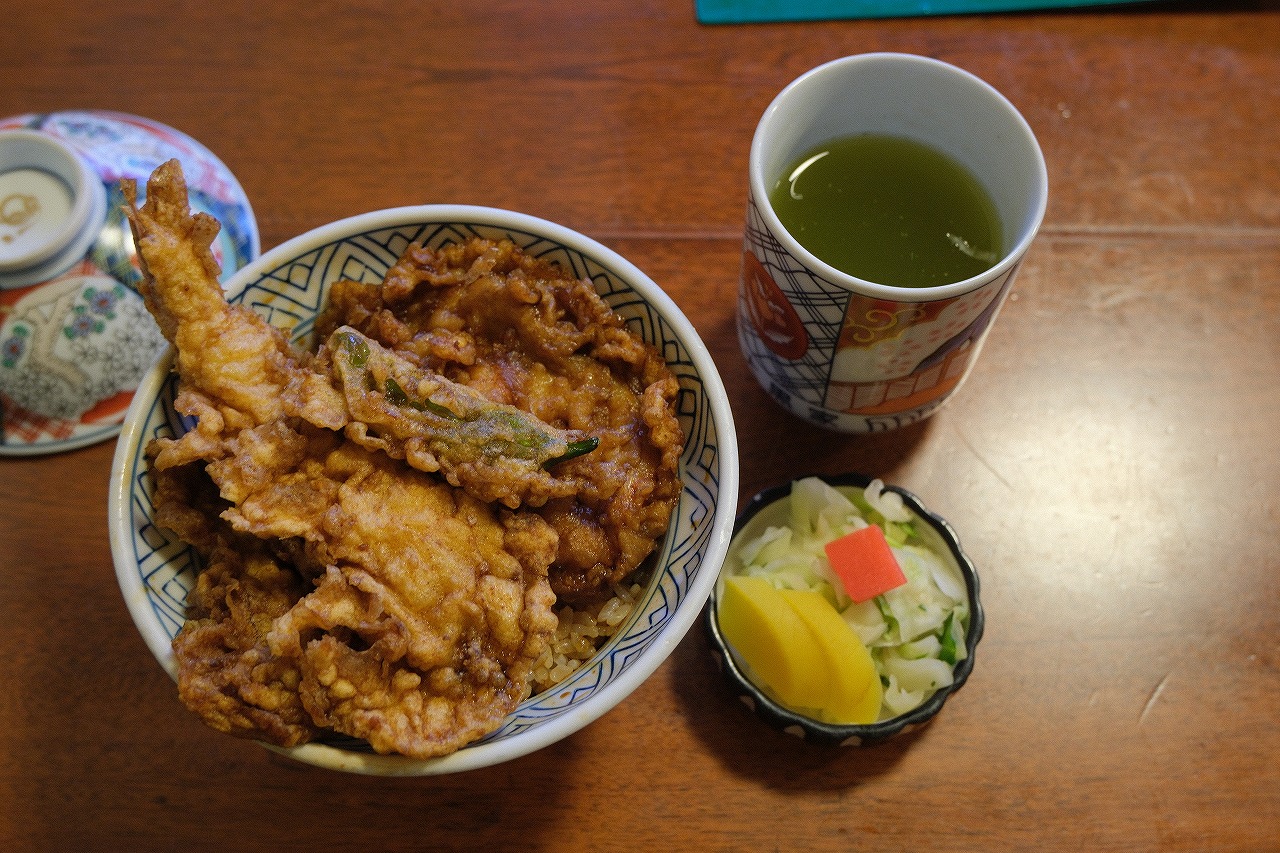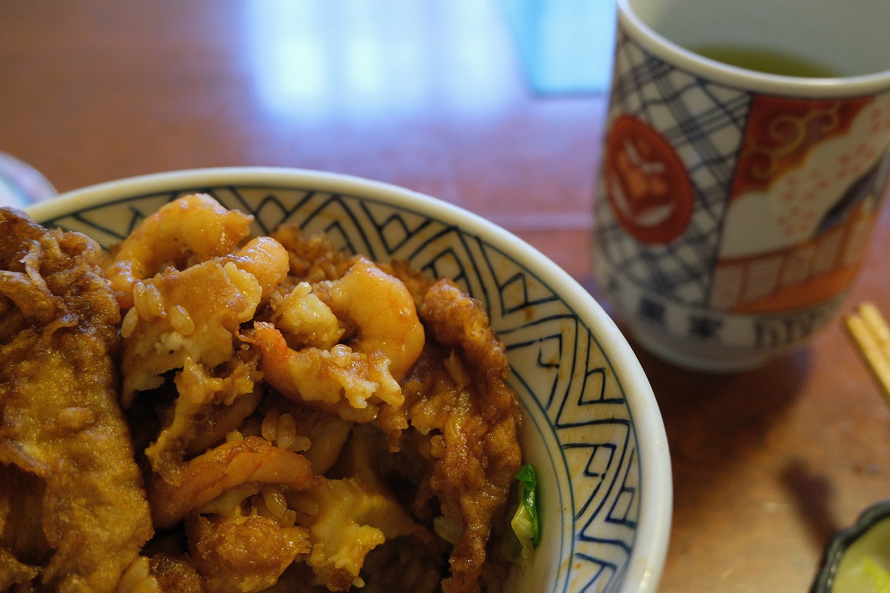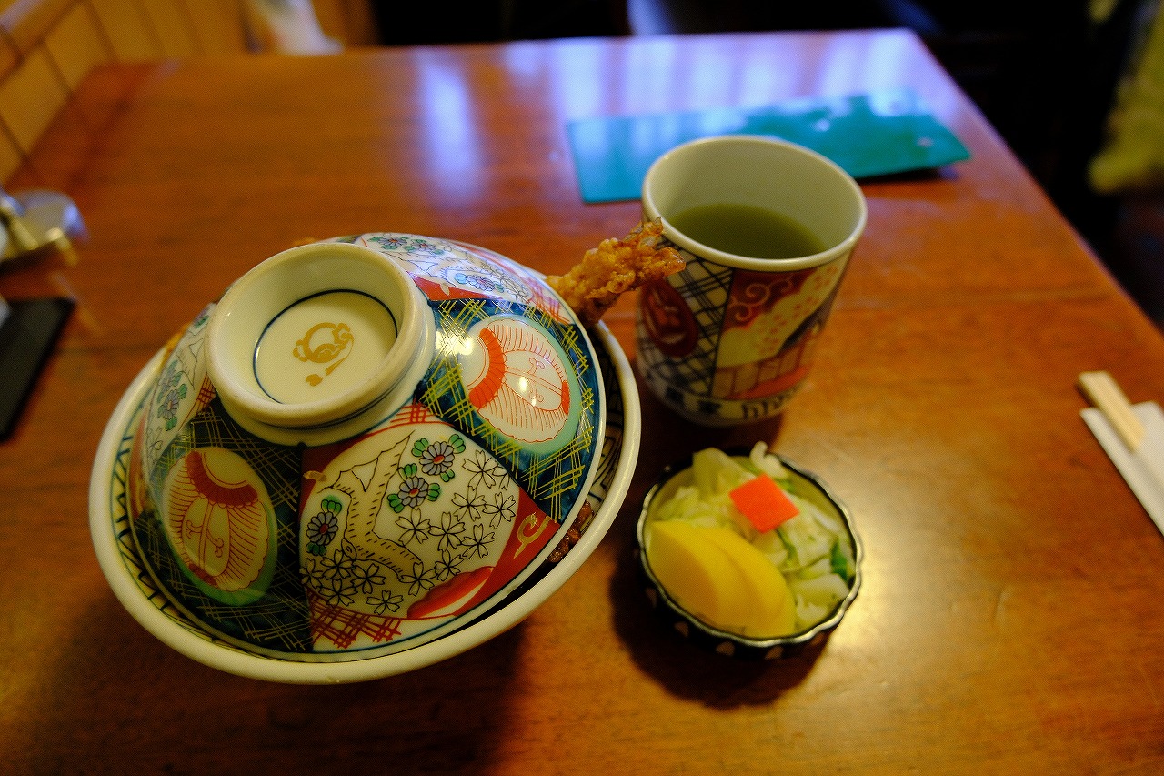天ぷらのネタに関しては海老も細く味わいもあまり感じませんが、ふわっとした食感の衣、濃そうで濃くない丼たれとのマッチングが老舗ならではの技を感じる天丼でした。