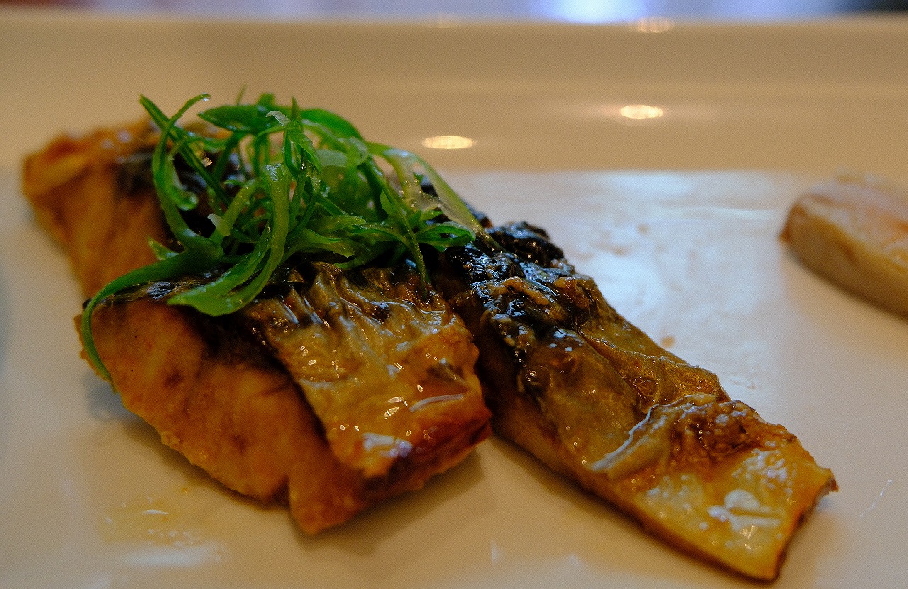 マリネした鯖に八角や五香粉が風味づけされ中華らしい一品になる。