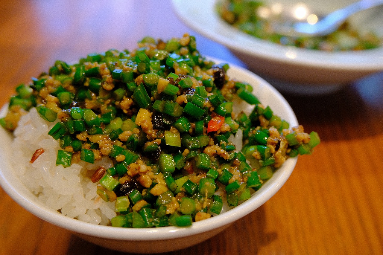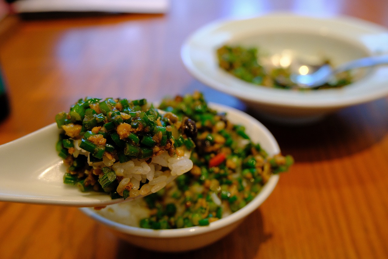 シャキシャキした食感、ニラの風味をご飯が受け止め、とても美味しい。