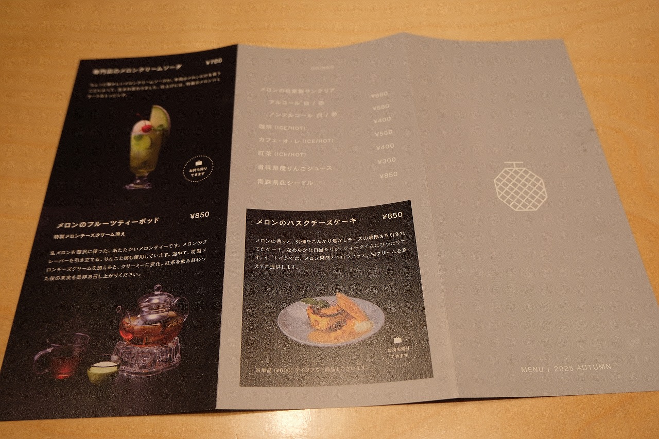店内は、木の温もりとやわらかな光に包まれた落ち着いた空間。まるで小さなアトリエのような雰囲気の中で、香り高いメロンスイーツを堪能できます。看板メニューの「生メロンソーダ」や「メロンパフェ」は、果実そのものの甘みと瑞々しさを存分に味わえる逸品。