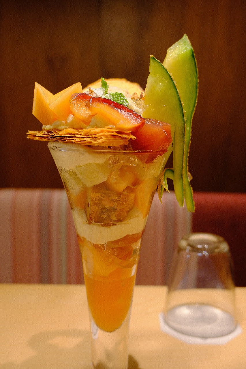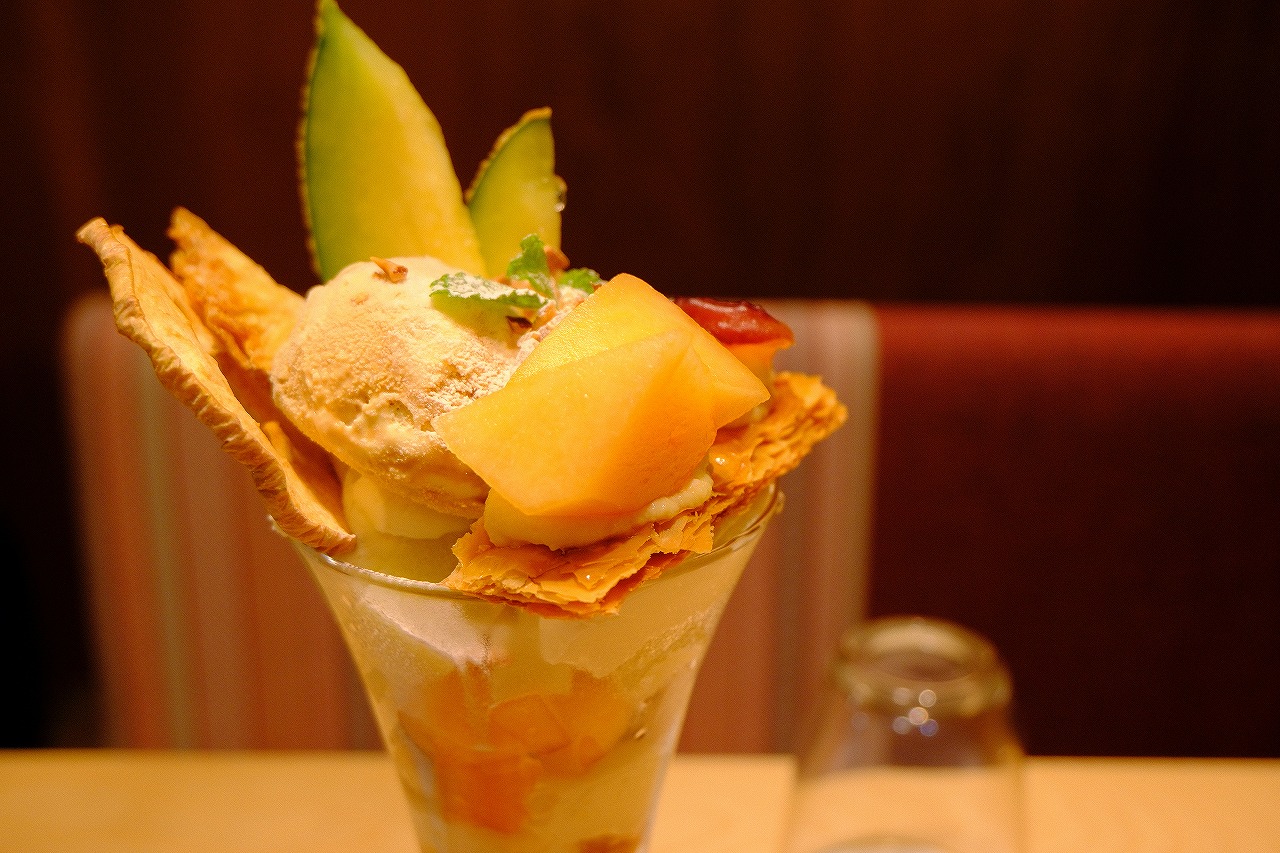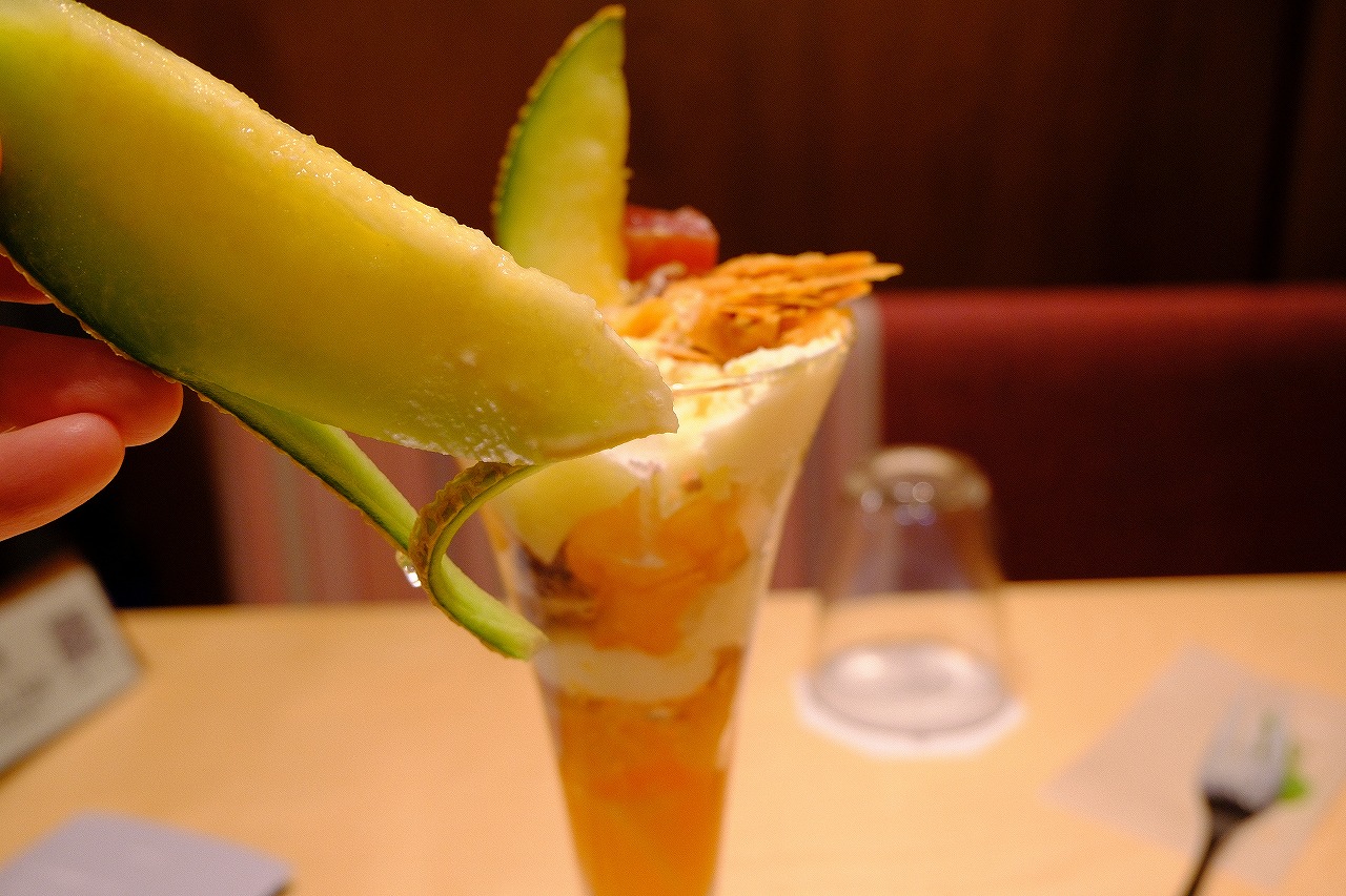 メロンとりんごのキャラメリゼパフェをいただいて2800円。