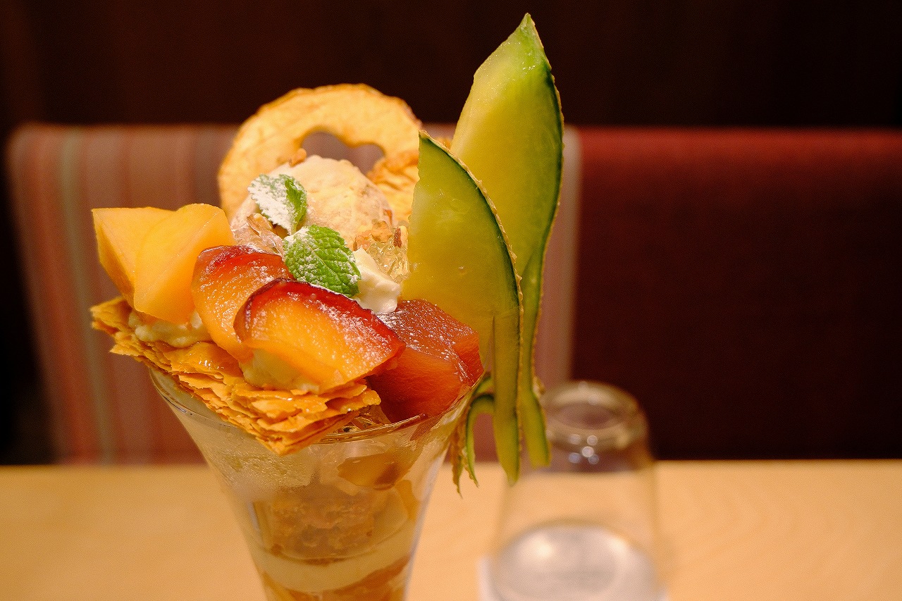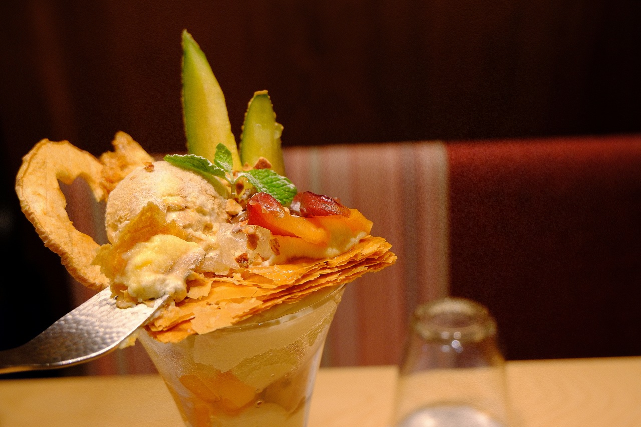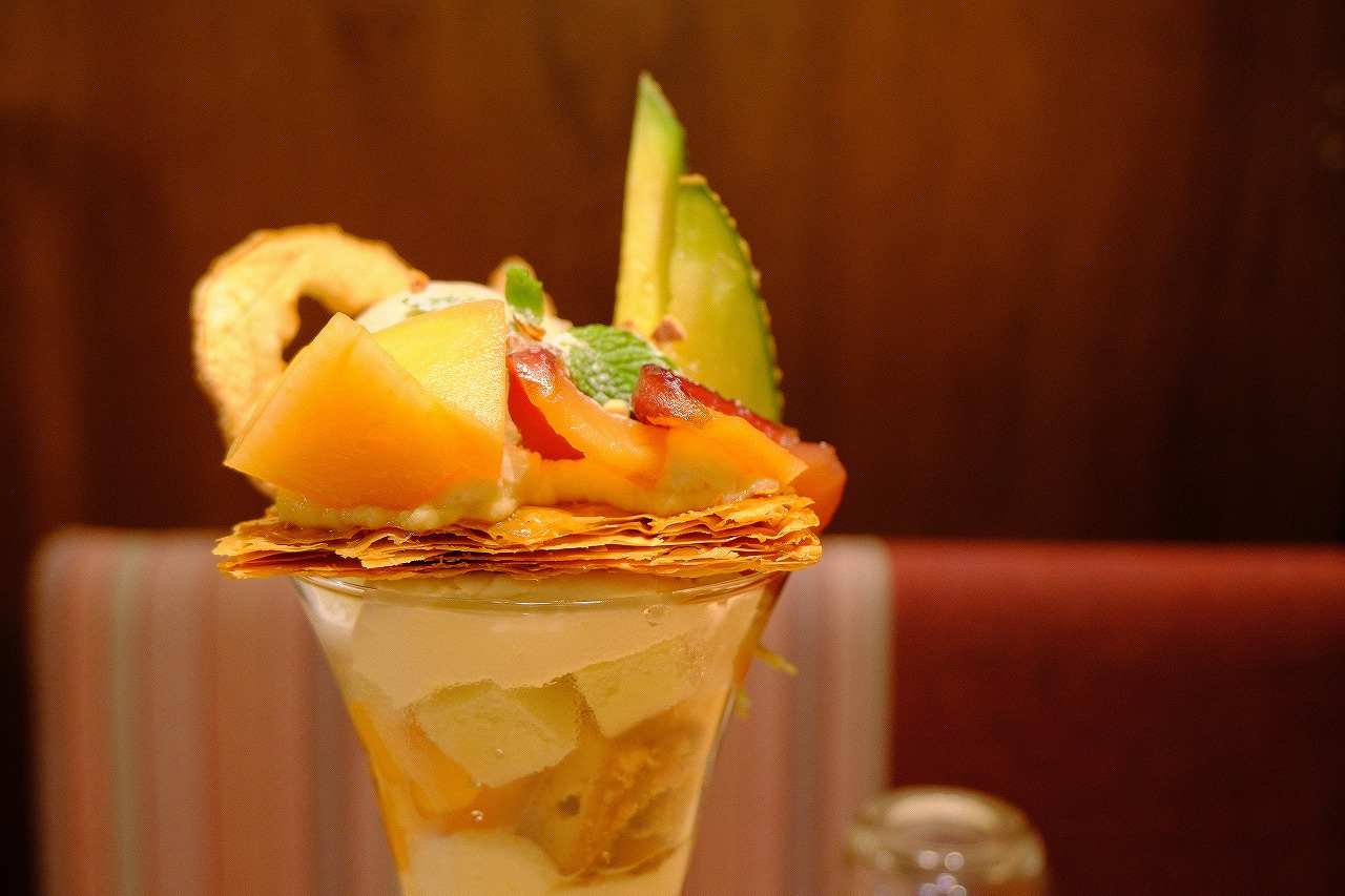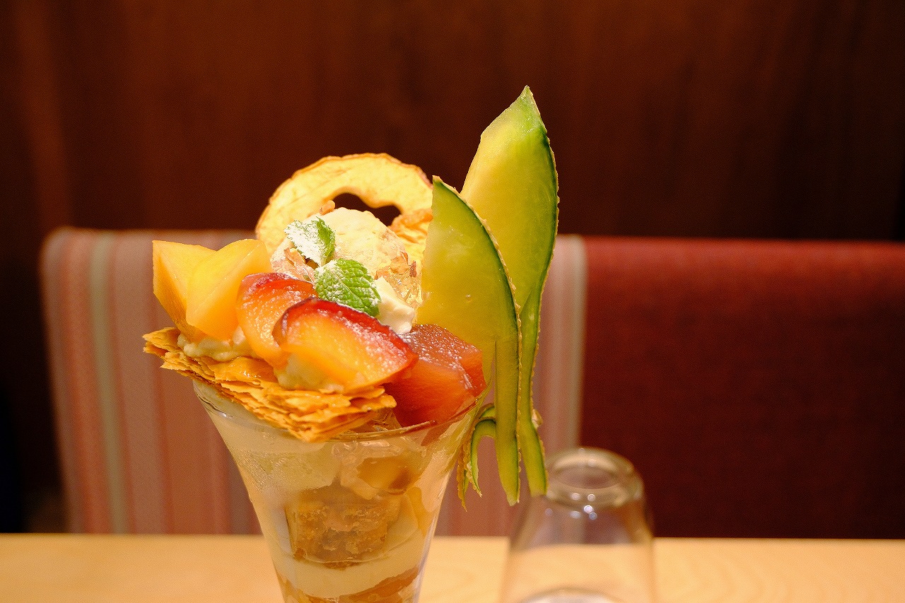メロンとりんごのキャラメリゼパフェをいただいて2800円。