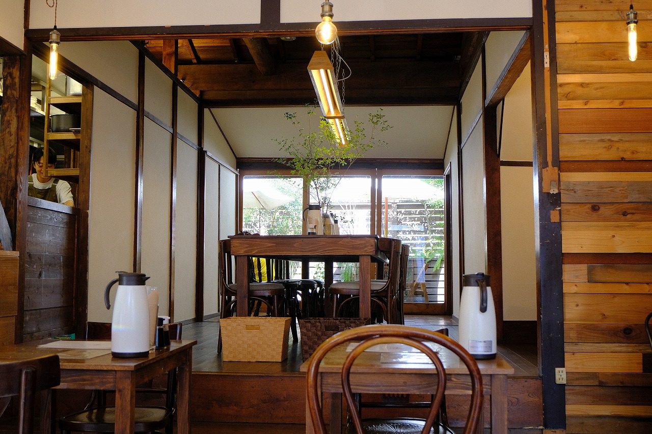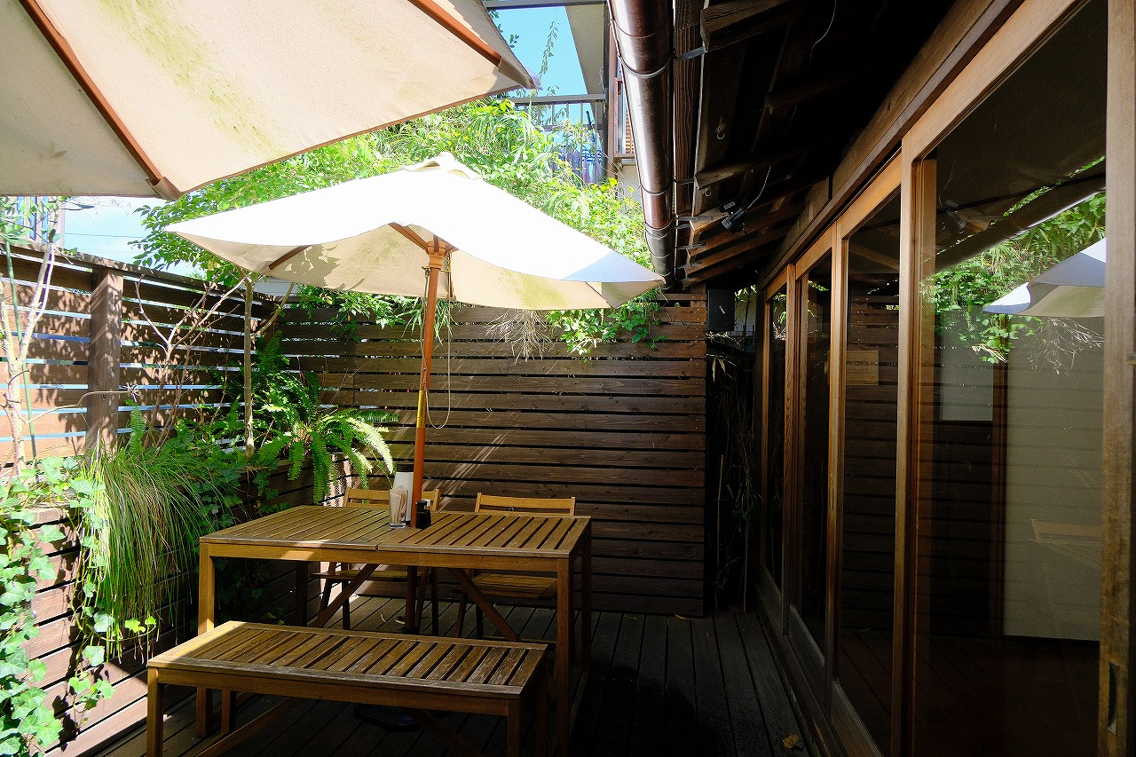 由比ガ浜店の店構えも古民家を活かした温かみのある空間で、店内席・テラス席もあります。