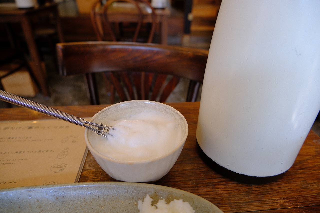 ヨリドコロの名物メレンゲTKGの卵が最初に届きます。