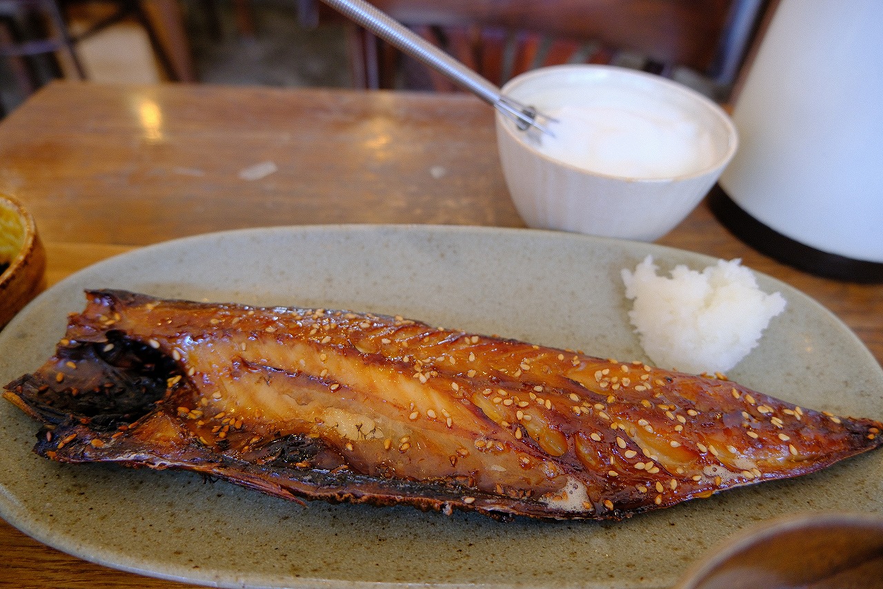 鯖のみりん干しは肉厚で甘めの醤油とよく合う一皿、なかなか美味しいと思いました。