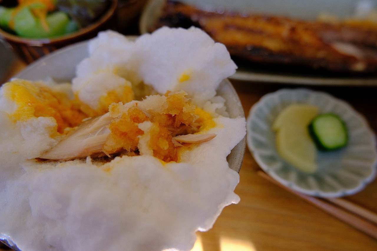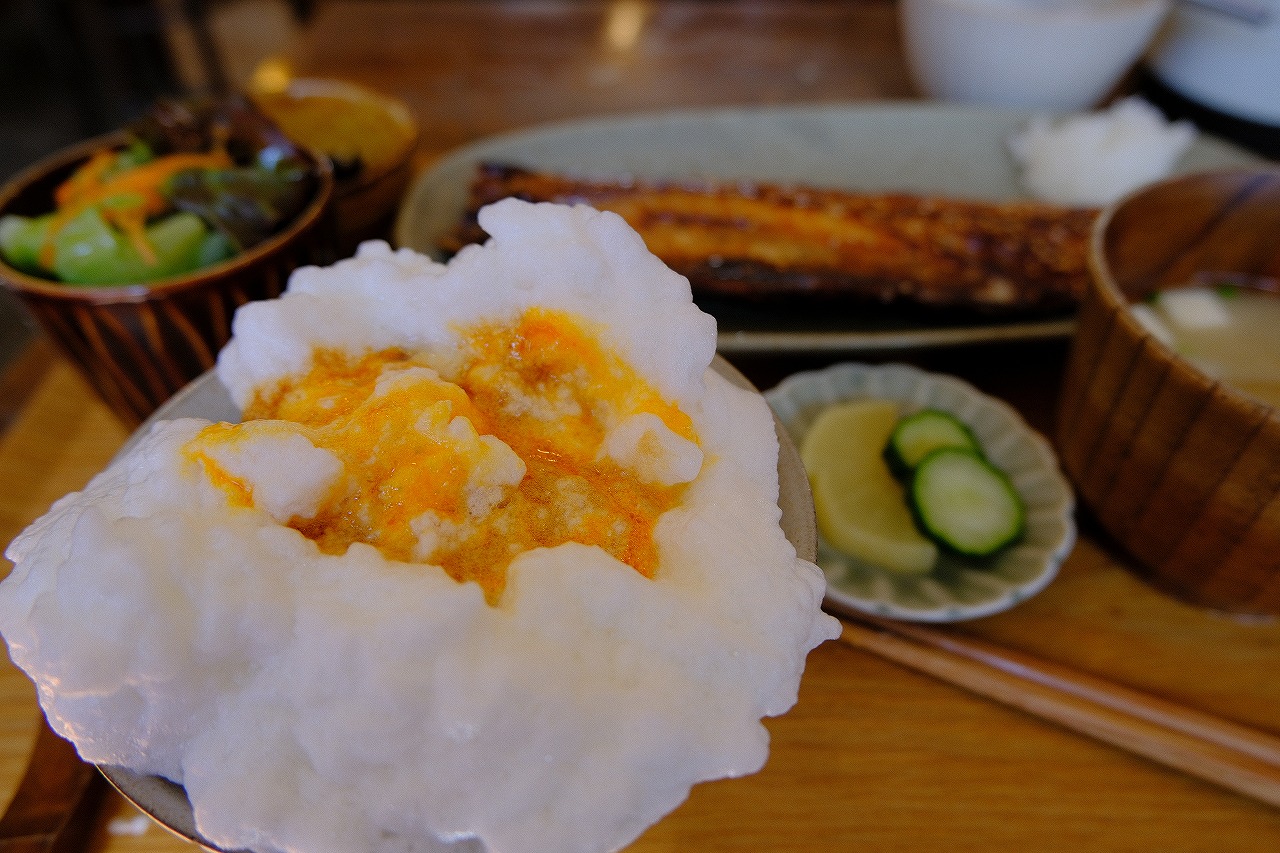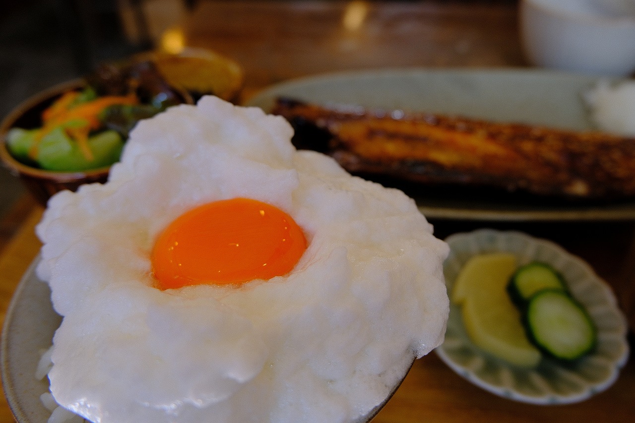 メニューの柱は無添加・天日干しで仕上げた干物(アジ・サバ・カマスなど)と、ふわふわに泡立てた卵白と黄身を組み合わせる“メレンゲ風卵かけご飯(TKG)”。