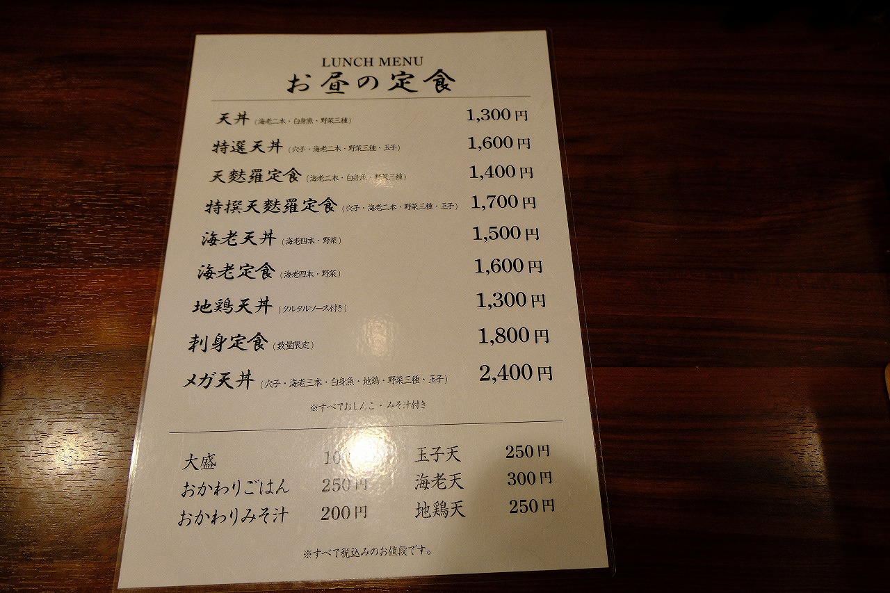 今回は特選天丼をいただきましたが、メガ天丼というほぼ全種類の天ぷらがのった天丼もあります。