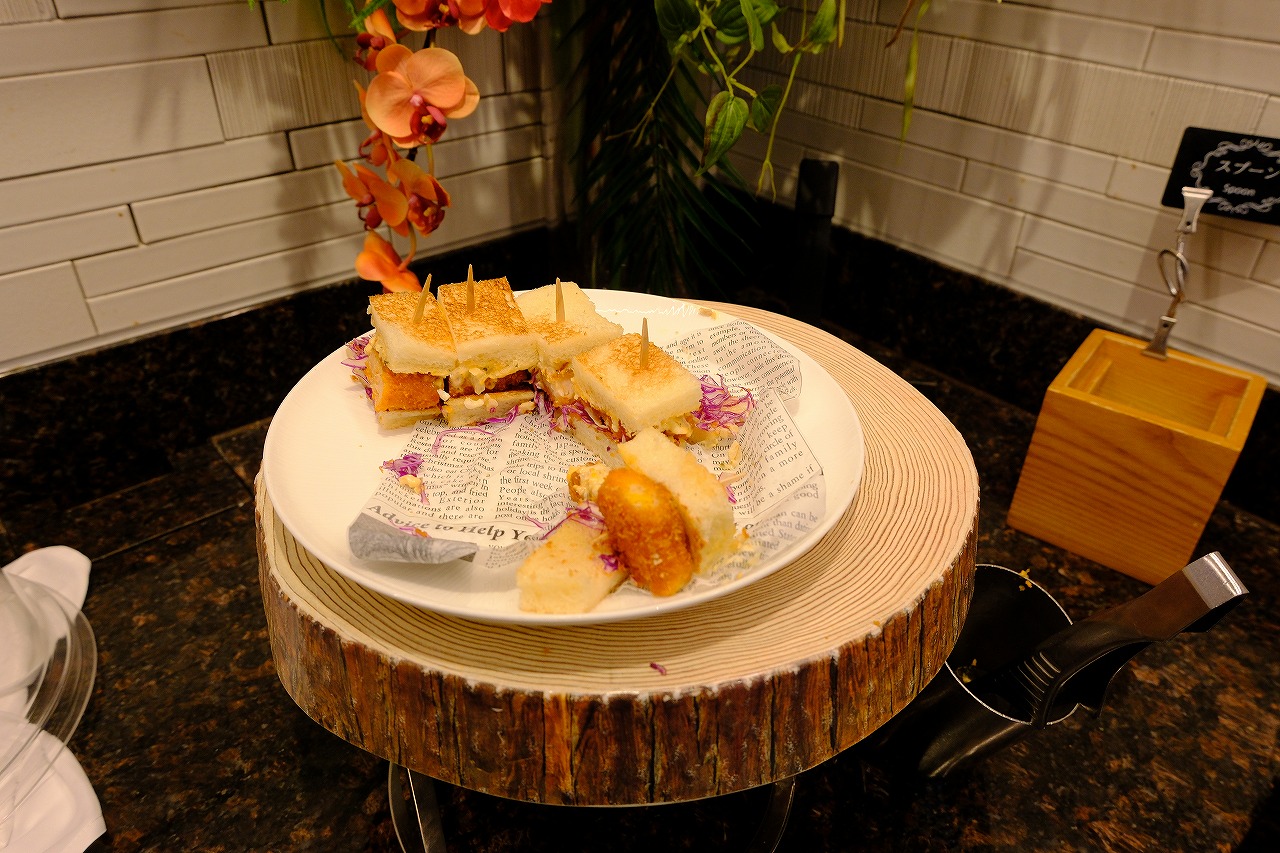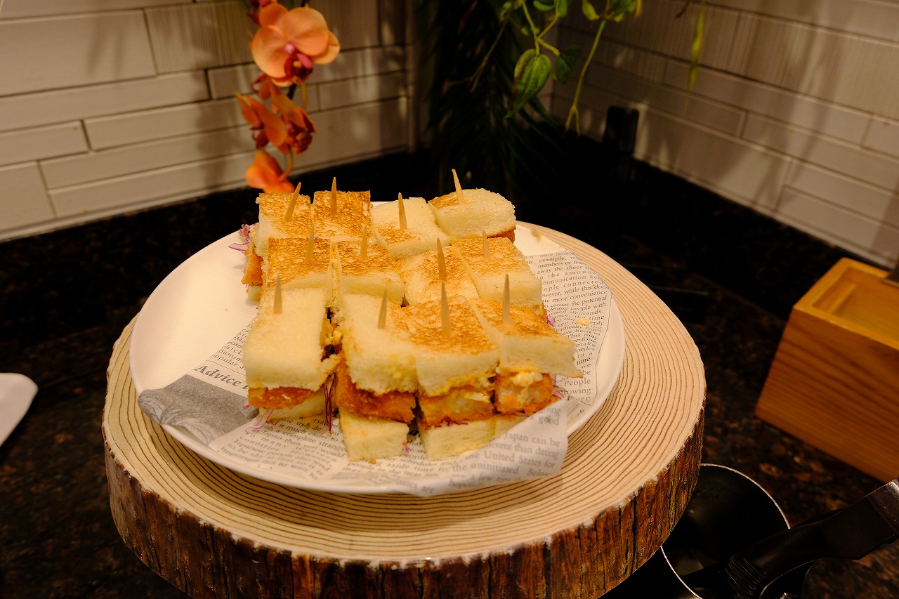 プリプリの海老カツにタルタル、焼かれた食パンがとても美味しい。