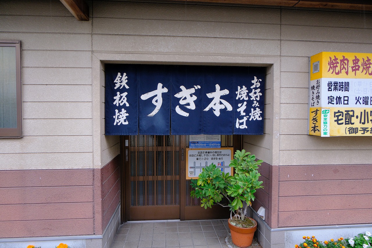 静岡県富士宮市にある「鉄板焼 すぎ本」は、昭和23年(1948年)創業の老舗お好み焼き・鉄板焼き店です。場所はJR身延線・西富士宮駅から徒歩約4分。店内にはカウンター席と鉄板付きテーブル席があり、一人でも家族連れでも利用しやすい雰囲気です。