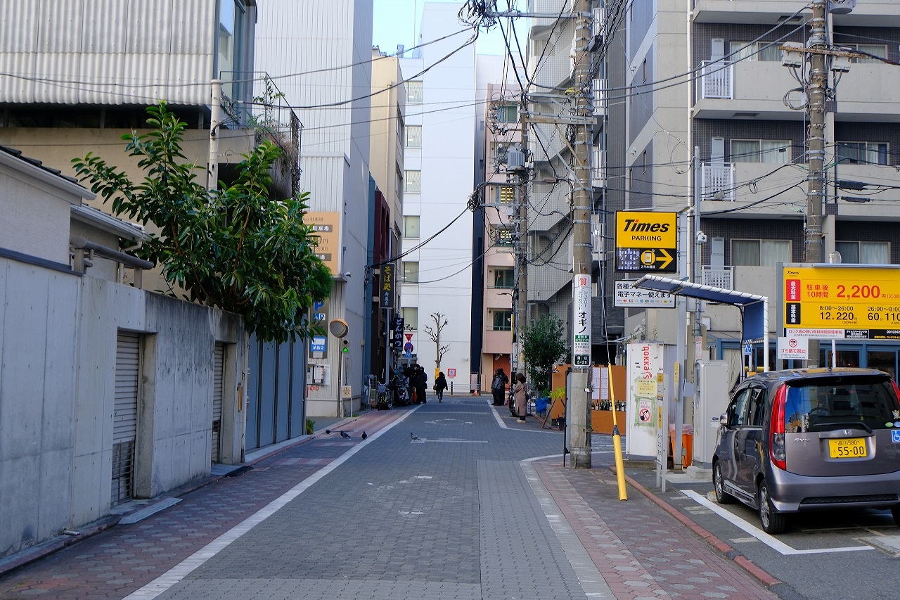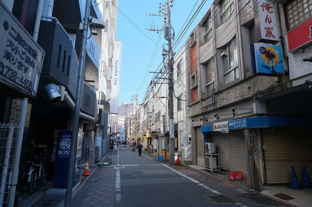 夜はもっと活気がある通りを通り丸一に向かいます。