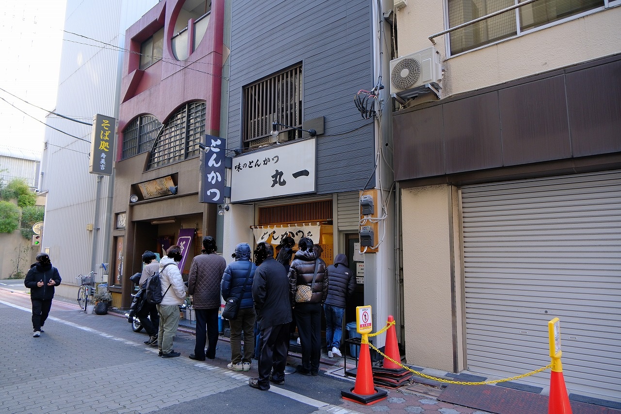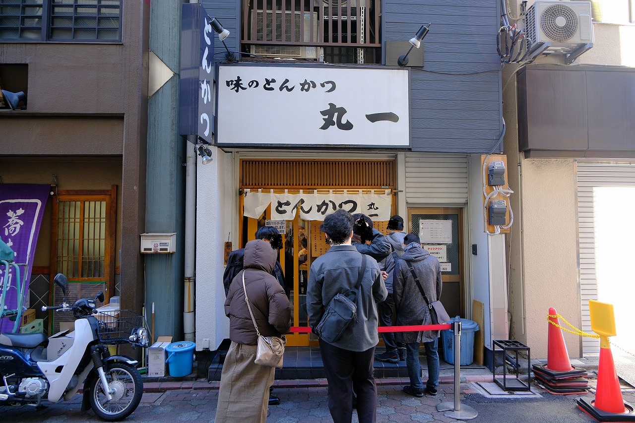 丸一 蒲田は、JR蒲田駅、京急蒲田駅のいずれからも徒歩圏内にあり、開店前から行列ができることもある人気店です。メニューはロースかつやヒレかつを中心とした定食が基本で、厚みのある豚肉を使用し、衣は黒く味わい深いのが特徴です。