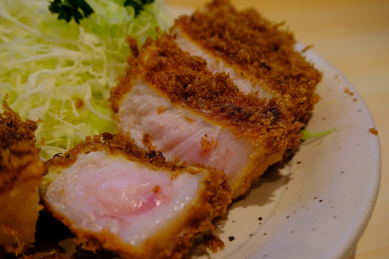 ラードで揚げられたとんかつは香ばしく、コロモの食感、豚肉の柔らかさ、甘みを存分に楽しめるすごいとんかつでした。