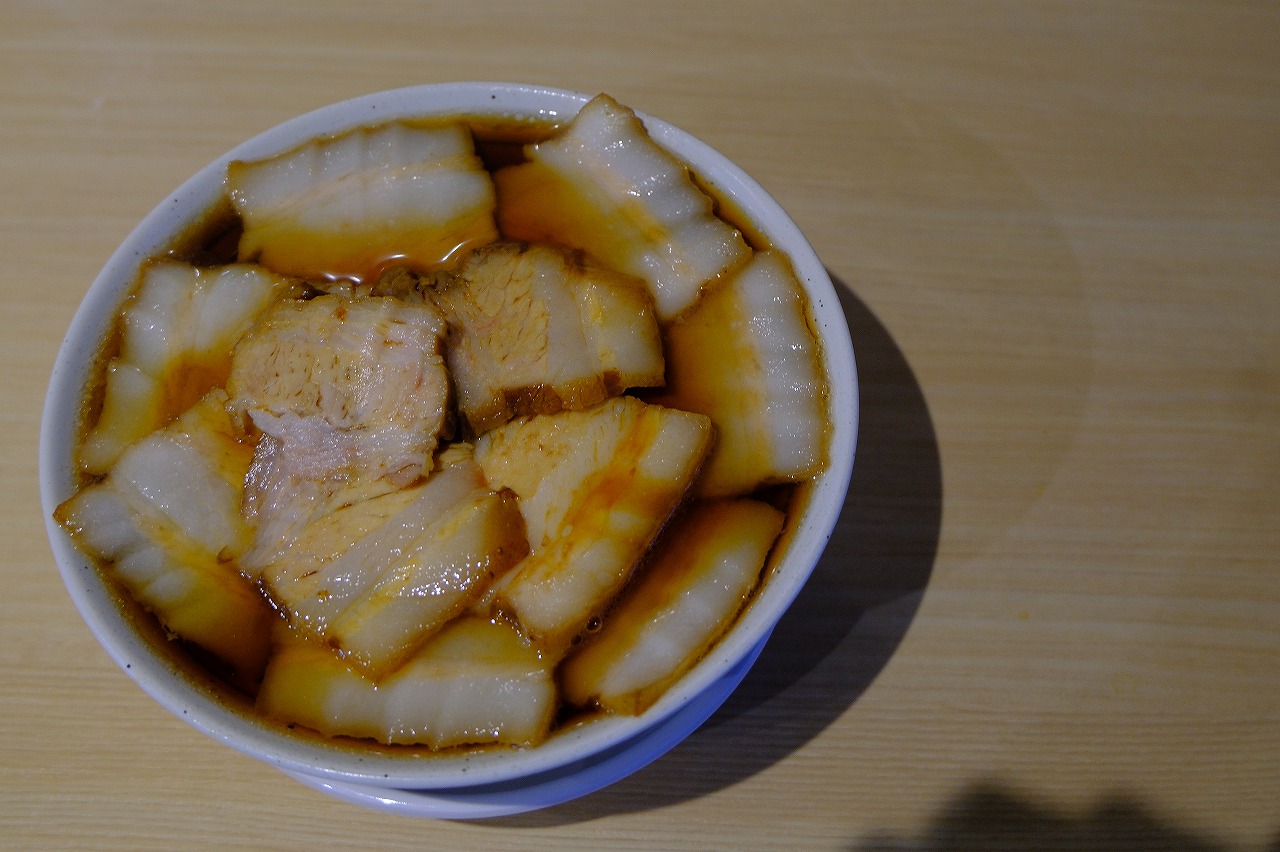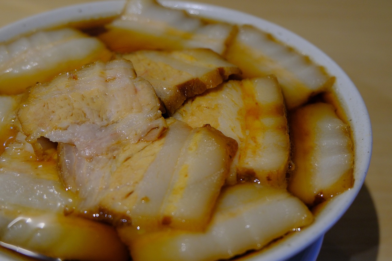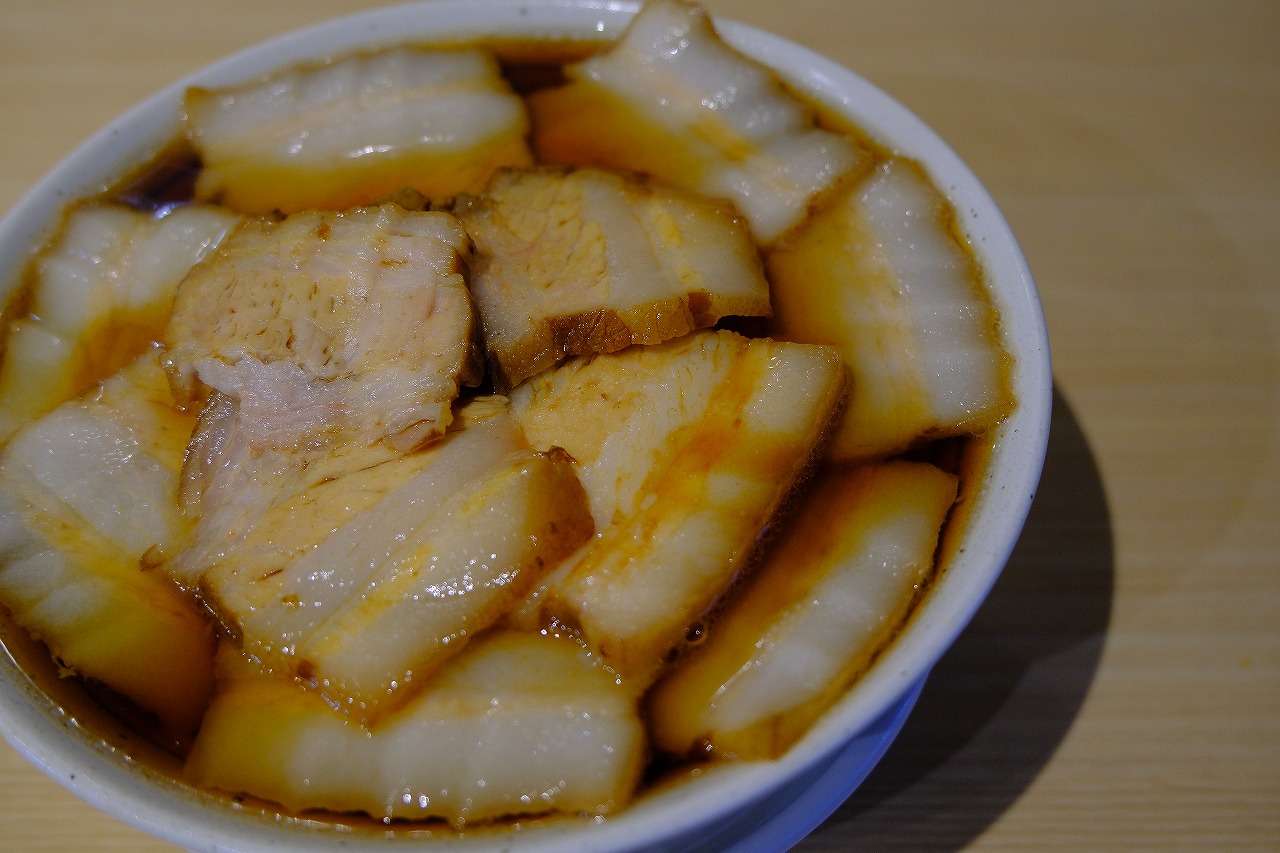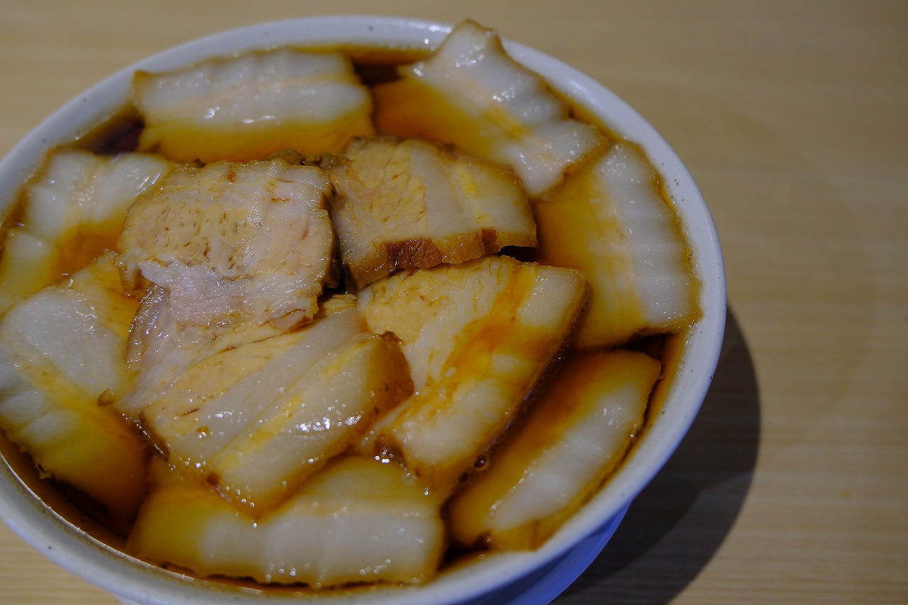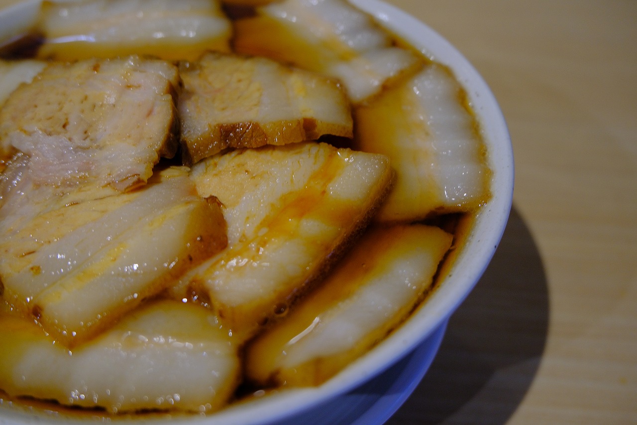 熱いスープでチャーシューの脂がやわらかくなり、舌触りもなめらかです。